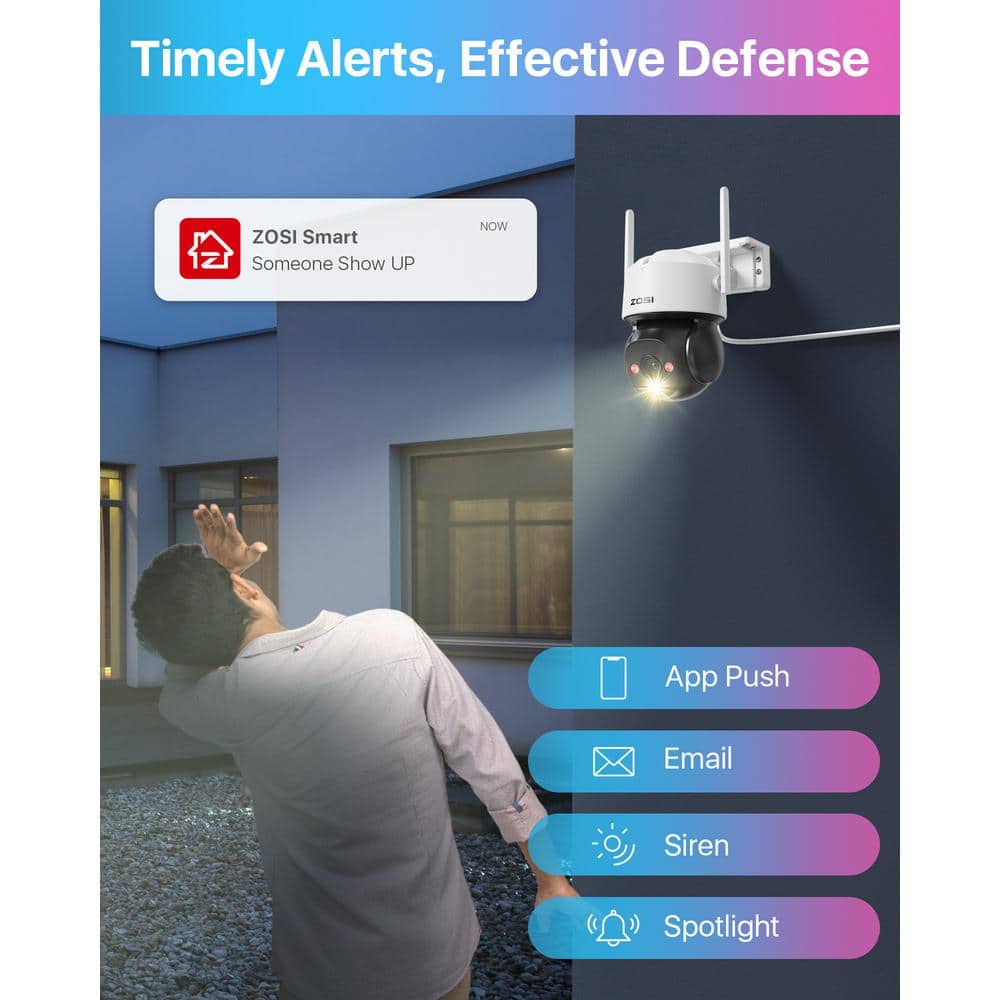 ZOSI 360° PTZ 2.5K Wi-Fi Outdoor Security Camera