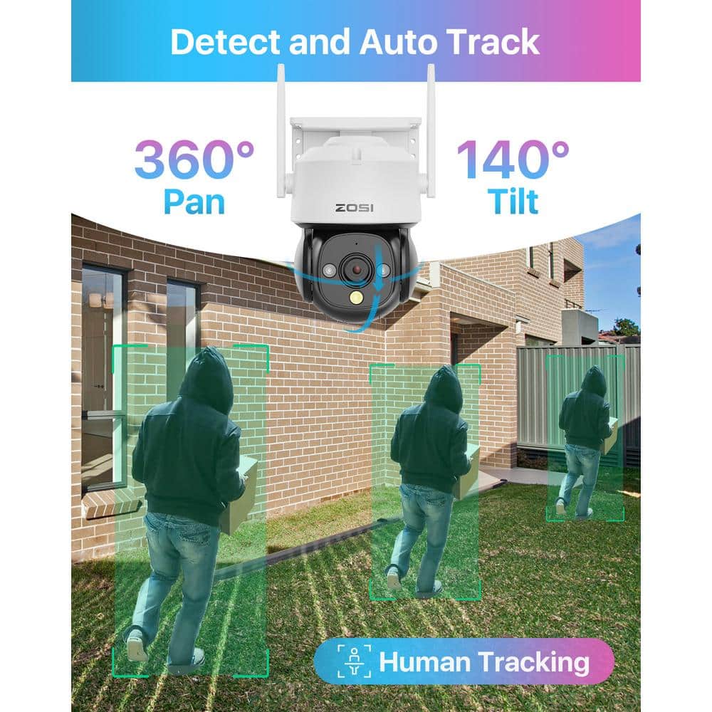 Safeguard your home with the ZOSI 360° PTZ 4 MP 2.5K Wi-Fi Outdoor Wireless Security Camera. Equipped with advanced AI detection and ultra-clear 2.5K resolution, this camera captures every detail day or night. Its robust weatherproof design ensures reliable performance in any condition.