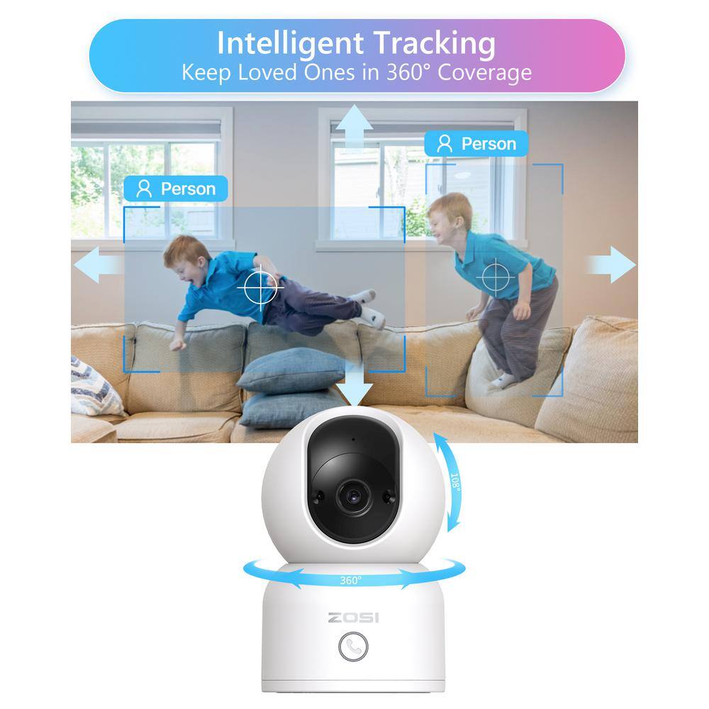 Enhance your home security with the ZOSI 3MP 2K PTZ WiFi Security Camera. Featuring automatic 360° tracking and smart AI detection, this camera keeps you always connected with real-time alerts. With dual-band WiFi connectivity and multiple storage options, it's perfect for seamless live viewing and recording.