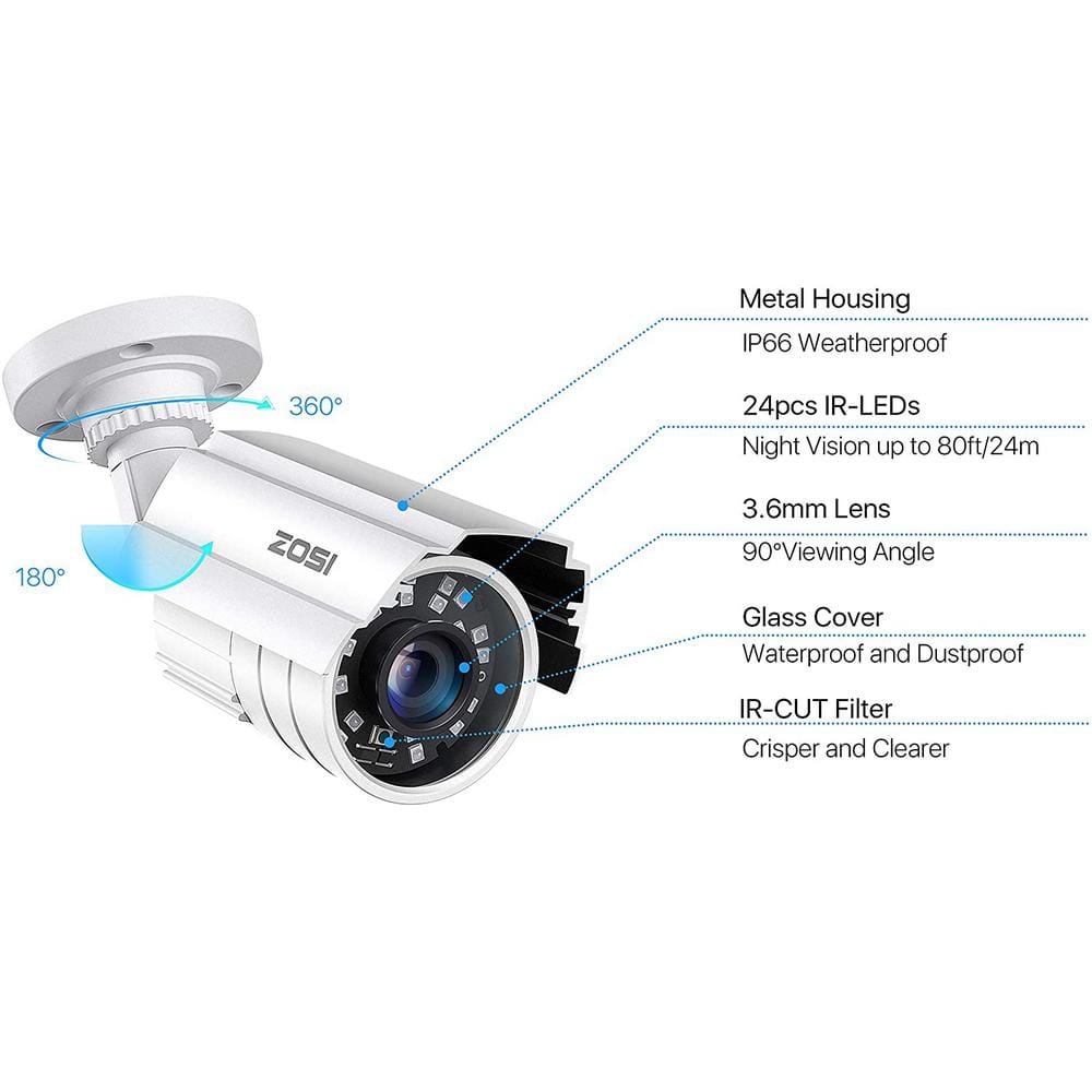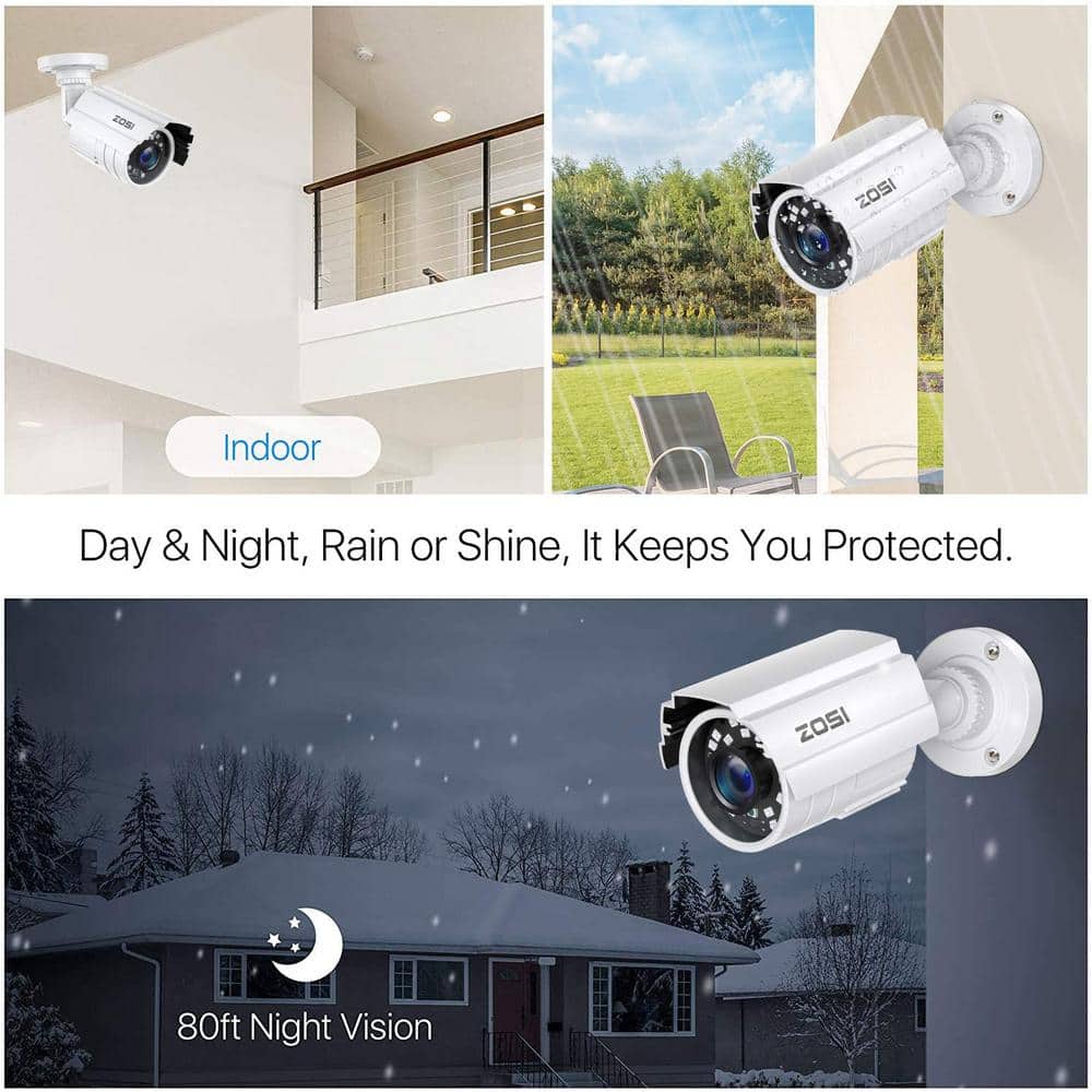 Ensure robust security with ZOSI's 2MP Outdoor Bullet Security Camera, engineered for superior performance with 1080p resolution and IR night vision up to 80 feet. Weather-resistant with an IP66 metal housing, this camera offers seamless surveillance both day and night.