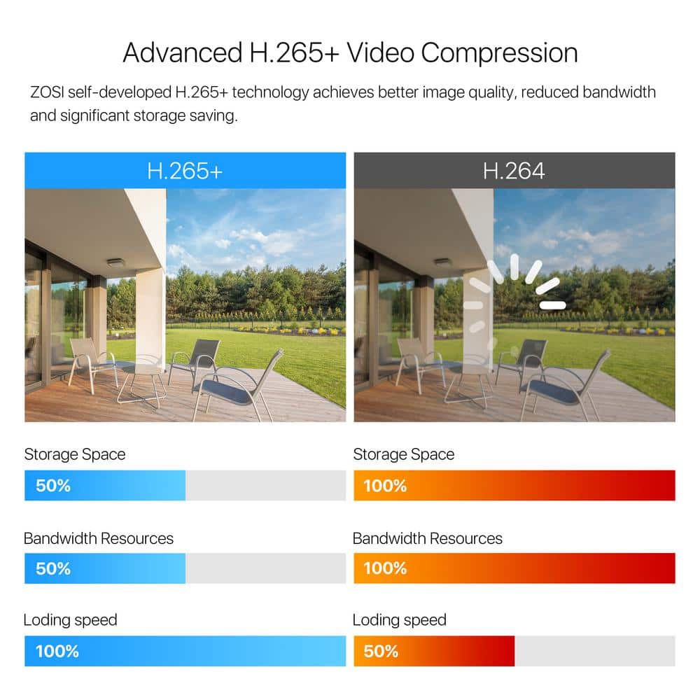 Compression Technology: The advanced H.265+ video compression saves up to 80% more storage space compared to H.264.