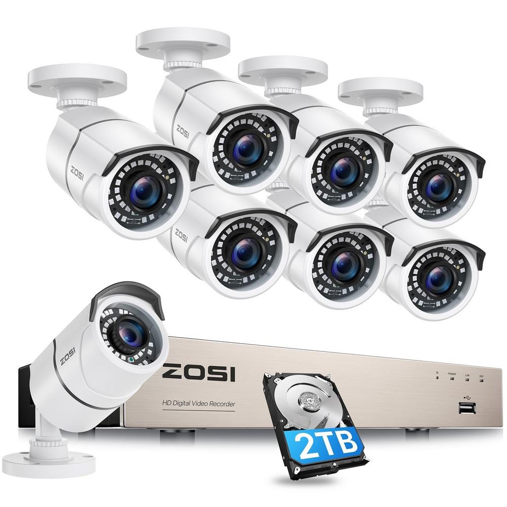 Equip your property with ZOSI's 8-Channel Security Camera System featuring 1080p HD visuals and cutting-edge H.265+ compression technology. This system includes eight robust, weatherproof bullet cameras, excellent night vision capabilities, and a generous 2TB hard drive for extensive footage storage. Ideal for monitoring your home or business, this system offers smart motion detection and remote access for peace of mind 24/7.