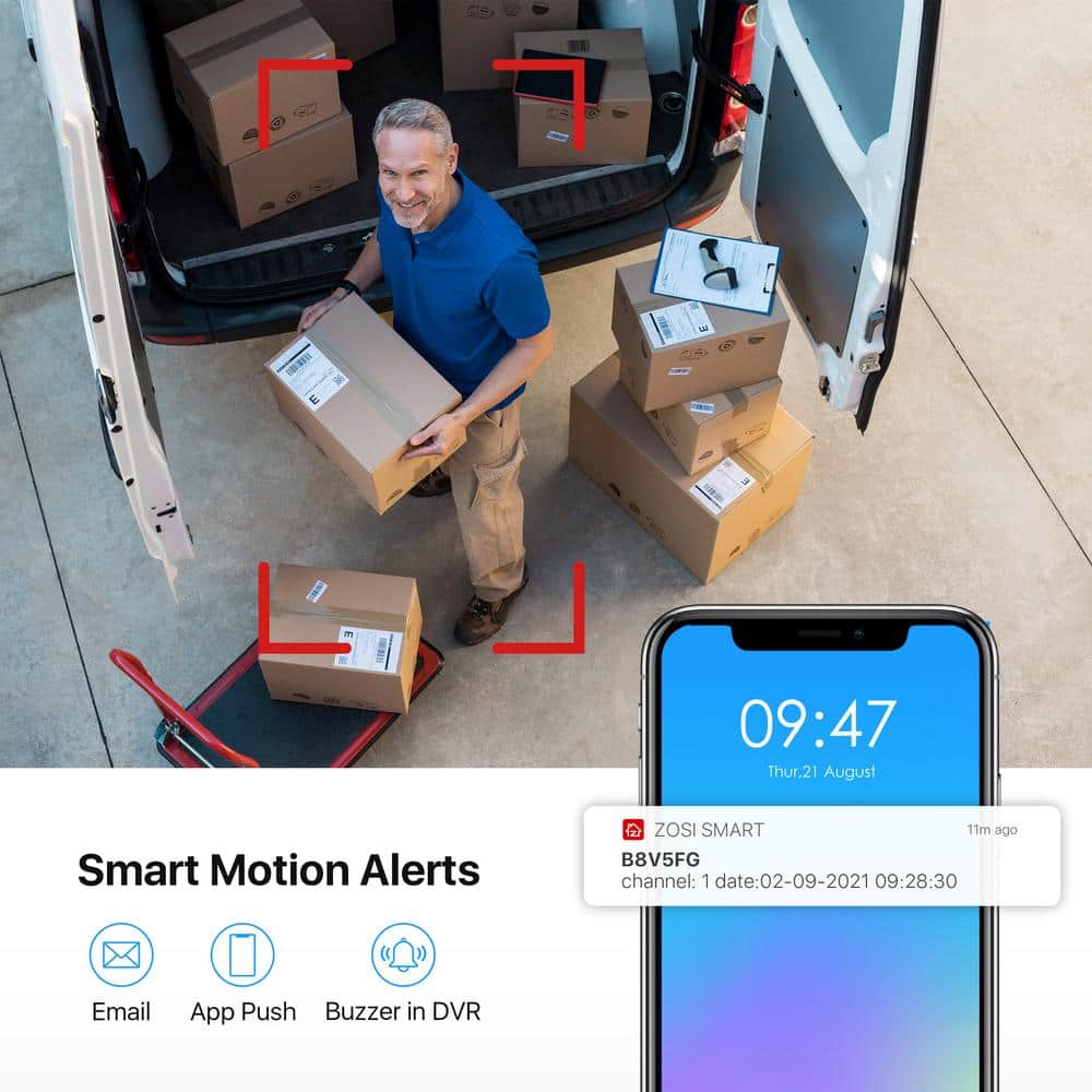 Smart Notifications: Customize detection zones to get instant alerts via the ZOSI Smart App, minimizing false alarms.