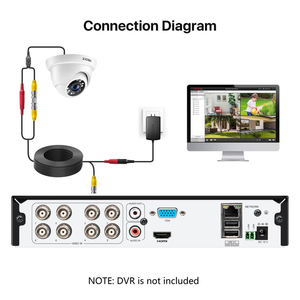 Ensure the safety of your property with the ZOSI Wired 1080p Outdoor Dome Security Camera. Featuring an IP66 weatherproof design, this camera offers exceptional durability under any conditions. With 80 feet of night vision and versatile 4-in-1 compatibility, it's perfect for comprehensive surveillance, day or night.