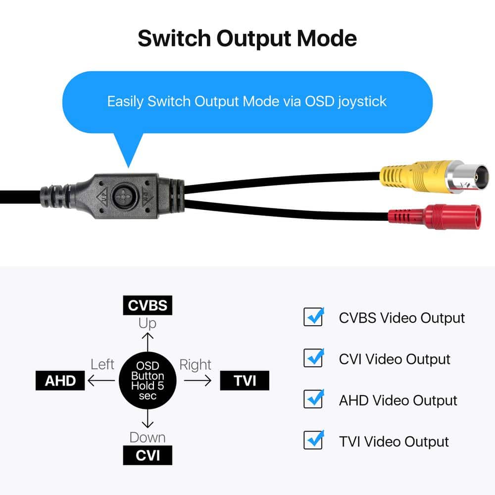 4-in-1 Compatibility: Easily integrates with TVI, CVI, AHD, and CVBS/960H analog DVRs.