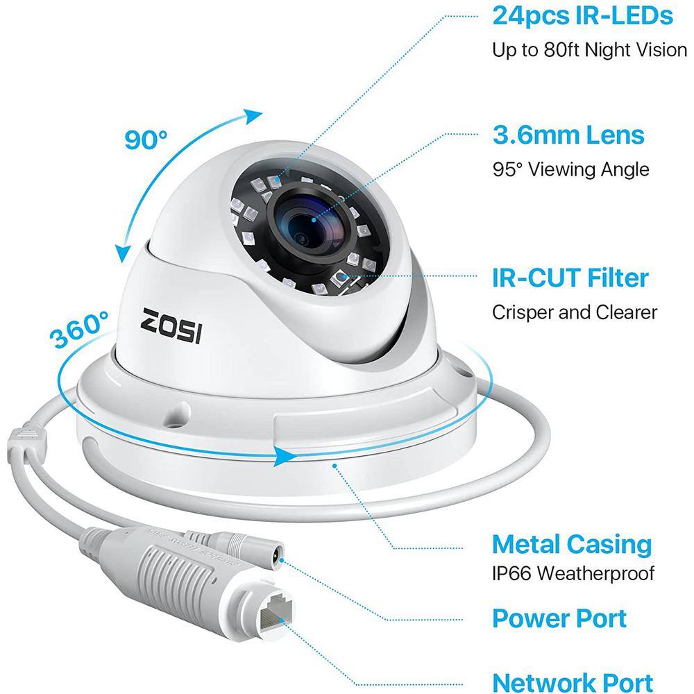 • Universal Compatibility: Designed to work seamlessly with ZOSI NVRs for optimal performance and video management.