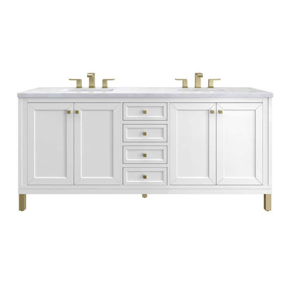James Martin Vanities Chicago 72" Double Vanity in Glossy White with Arctic Fall Top