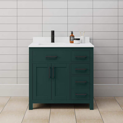 Wyndham Collection Beckett 36" Green Bathroom Vanity with White Cultured Marble Top