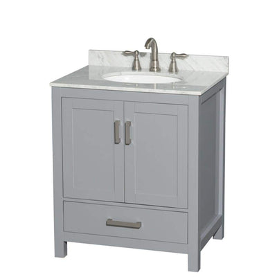 Wyndham Collection Sheffield 30" Gray Bathroom Vanity with White Carrara Marble Top