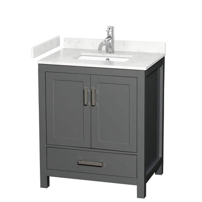 Wyndham Collection Sheffield 30" Single Bath Vanity in Dark Gray with Carrara Marble Top