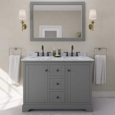 Wyndham Collection Avery 48" Double Bath Vanity in Dark Gray with White Carrara Marble Top