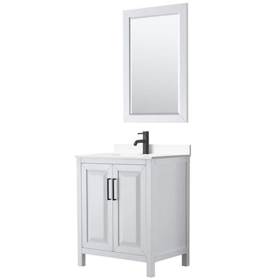 Wyndham Collection Daria 30" Single Bath Vanity in White with Cultured Marble Top and Mirror