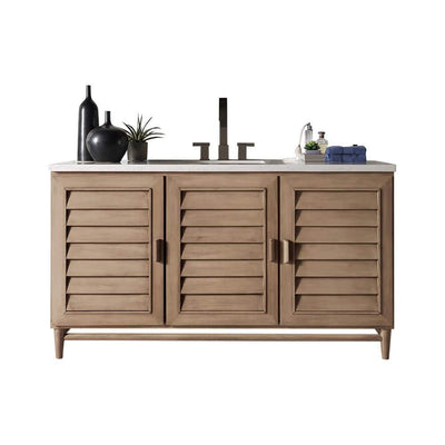 James Martin Vanities Portland 60" Single Vanity in Whitewashed Walnut with Quartz Top