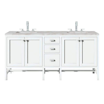 James Martin Vanities Addison 72" Double Bathroom Vanity in Glossy White with Quartz Top