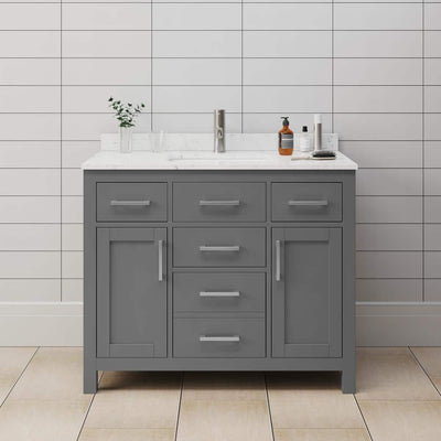 Wyndham Collection Beckett 42" Dark Gray Vanity with Carrara Marble Top