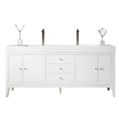 James Martin Vanities Linear 72.5" Double Bath Vanity in Glossy White with Solid Surface Top