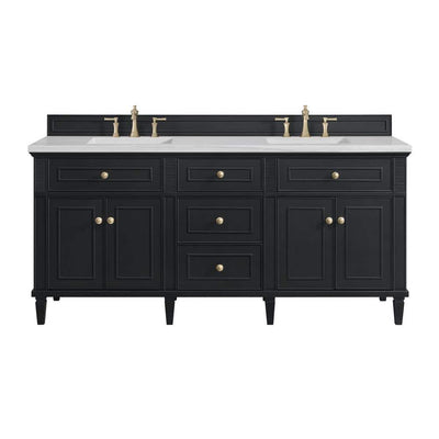 James Martin Vanities Lorelai 72" Double Bath Vanity in Black Onyx with Arctic Fall Top