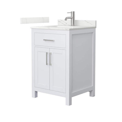 Wyndham Collection Beckett 24" Freestanding White Bath Vanity with Giotto Quartz Top