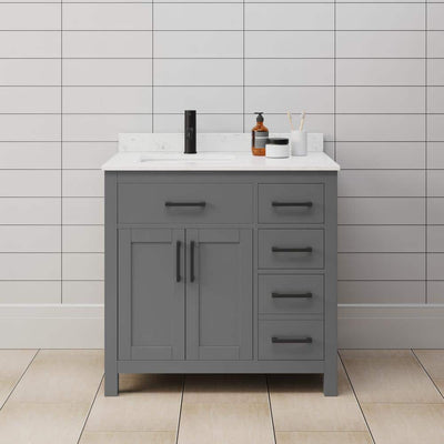 Wyndham Collection Beckett 36" Bathroom Vanity in Dark Gray with Carrara Marble Top