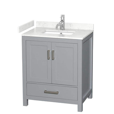 Wyndham Collection Sheffield 30" Gray Bathroom Vanity with Carrara Marble Top