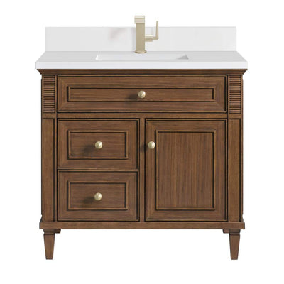 James Martin Vanities Lorelai 36" Single Sink Bath Vanity in Mid-Century Walnut with White Zeus Quartz Top