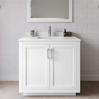 Wyndham Collection Miranda 36" White Bathroom Vanity with Cultured Marble Top