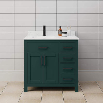 Wyndham Collection Beckett 36" Green Bathroom Vanity with Carrara Marble Top