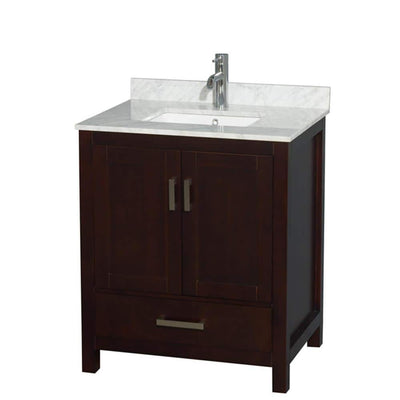 Wyndham Collection Sheffield 30" Bathroom Vanity in Espresso with Carrara Marble Top