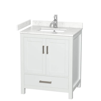 Wyndham Collection Sheffield 30" Bathroom Vanity with Carrara Marble Top