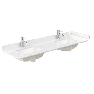 Wyndham Collection 66 in. White Quartz Double Sink Bathroom Vanity Top with Backsplash