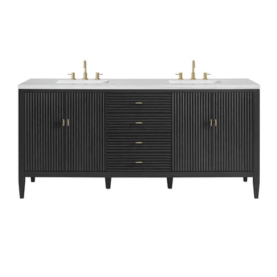 James Martin Vanities Myrrin 72-inch Double Bathroom Vanity in Carbon Oak with Arctic Fall Top