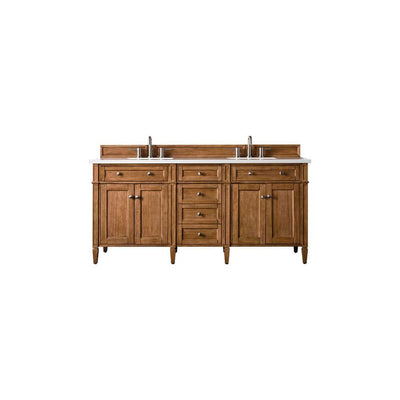 James Martin Vanities Brittany 72" Saddle Brown Double Vanity with White Zeus Quartz Top