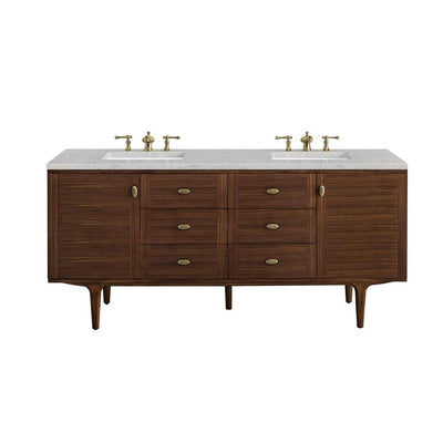 James Martin Vanities Amberly 72" Mid-Century Walnut Bathroom Vanity with Quartz Top