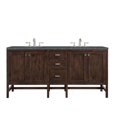James Martin Vanities Addison 72" Double Vanity in Mid-Century Acacia with Parisien Bleu Quartz Top