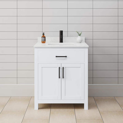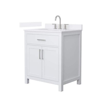 Wyndham Collection Beckett 30" Freestanding White Bath Vanity with Quartz Top