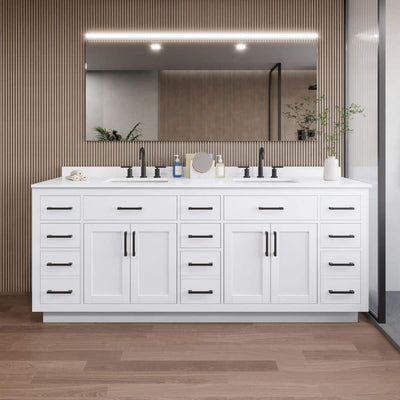 Wyndham Collection Beckett TK 84" Double Sink Bath Vanity with White Quartz Top