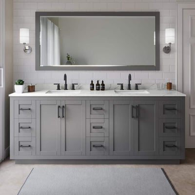 Wyndham Collection Miranda 84" Double Bath Vanity in Dark Gray with Giotto Quartz Top