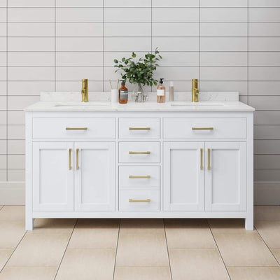 Wyndham Collection 60 in. Quartz Double Sink Bathroom Vanity Top in Giotto