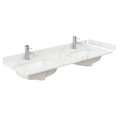 Wyndham Collection 60 in. Quartz Double Sink Bathroom Vanity Top with Backsplash