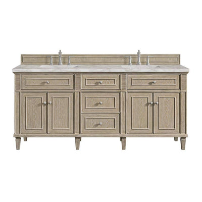 James Martin Vanities Lorelai 72" Double Bath Vanity in Whitewashed Oak with Victorian Silver Quartz Top