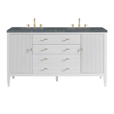 James Martin Vanities Myrrin 60" Double Bathroom Vanity with Parisien Bleu Quartz Top