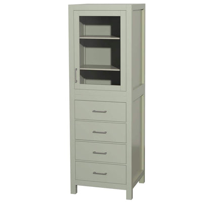Wyndham Collection Sheffield 24" Light Green Linen Cabinet with Soft-Close Drawers