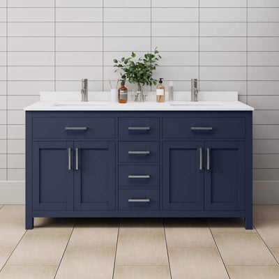 Wyndham Collection Beckett 66" Double Sink Bathroom Vanity in Dark Blue with Cultured Marble Top