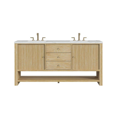 James Martin Vanities Marigot 72" Double Bathroom Vanity in Sun Washed Oak with Quartz Top