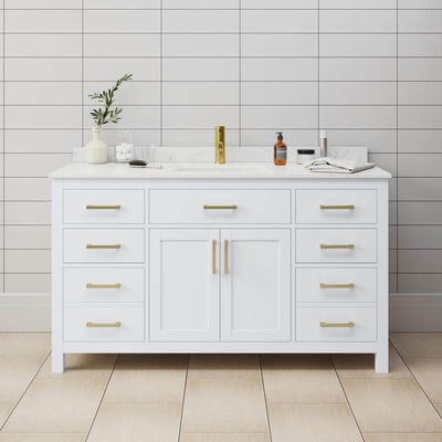Wyndham Collection Beckett 60" Single Sink Bath Vanity with Carrara Marble Top