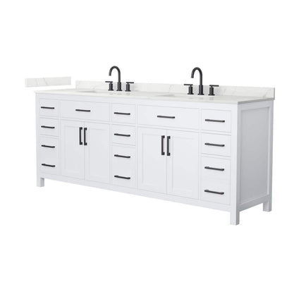 Wyndham Collection Beckett 84 in. Double Freestanding White Bath Vanity with White Quartz Top