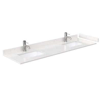 Wyndham Collection 72 in. Cultured Marble Double Basin Vanity Top - Light-Vein Carrara with White Basins