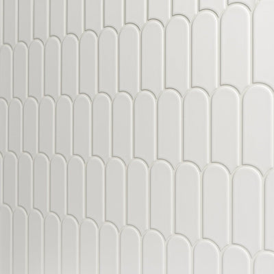 Festival White Scallop Porcelain Mosaic Tile - 13 x 13 Inches, High Gloss Finish, Durable Porcelain