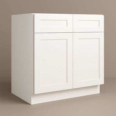 Plywell Shaker Sink Base Cabinet, Ready to Assemble, White, 27x34.5x24 in.
