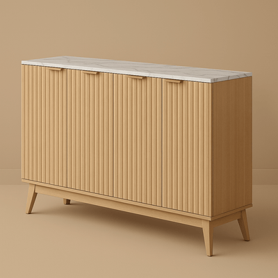 QueenFun Cabinson Natural Oak Sideboard Buffet Cabinet with Faux Stone Finish Top & 4 Doors